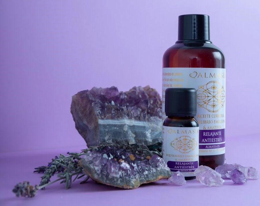 Gama de Aceites esenciales con gemas semipreciosas para el cuidado corporal y...